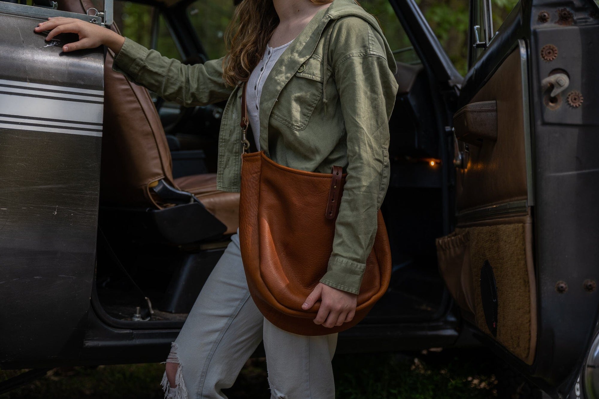 AVERY LEATHER TOTE BAG - MINI CROSSBODY - SADDLE WITH ZIPPER - IN STOCK