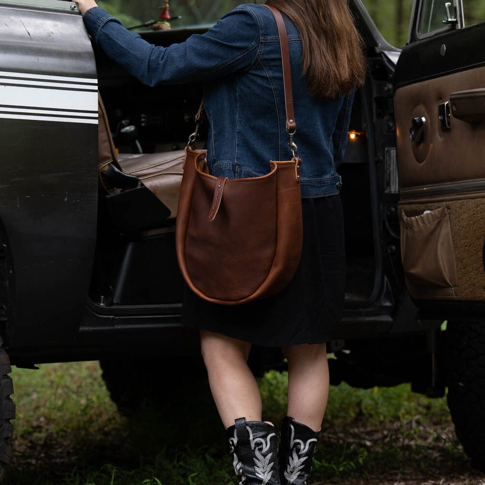 AVERY LEATHER TOTE BAG - MINI CROSSBODY - SADDLE