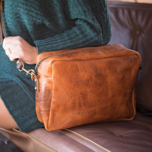 SARAH LEATHER CROSSBODY - LARGE - WHISKY BISON