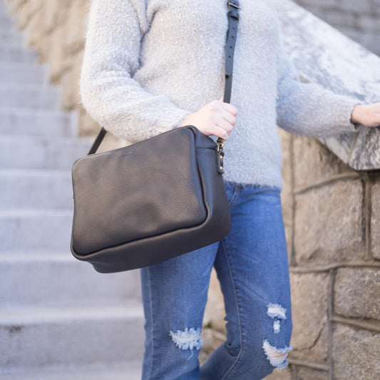 SARAH LEATHER CROSSBODY - LARGE - RAVEN