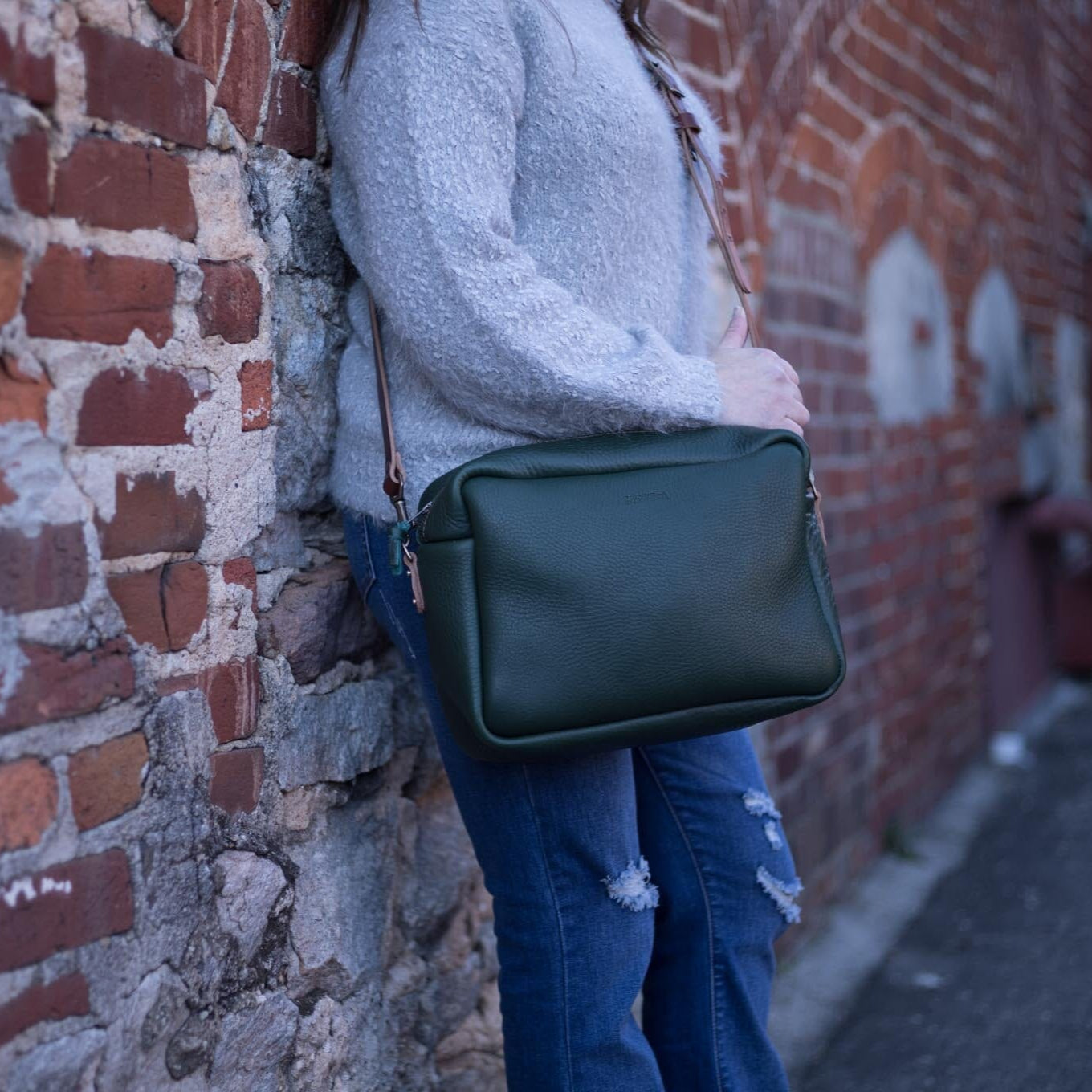 SARAH LEATHER CROSSBODY - LARGE - FOREST GREEN
