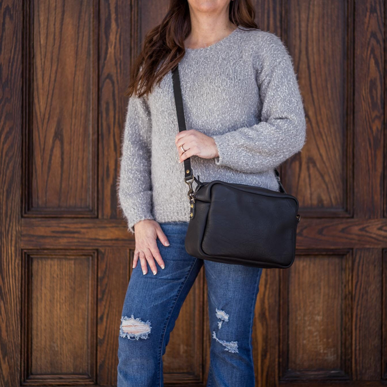 SARAH LEATHER CROSSBODY - MEDIUM - BLACK