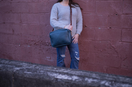 SARAH LEATHER CROSSBODY - LARGE - SMOKEY BLUE