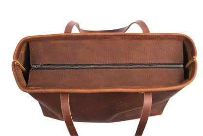 AVERY LEATHER TOTE BAG - LARGE - MOCHA WITH ZIPPER - IN STOCK