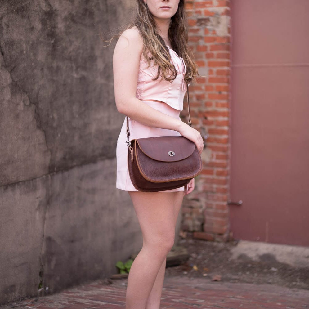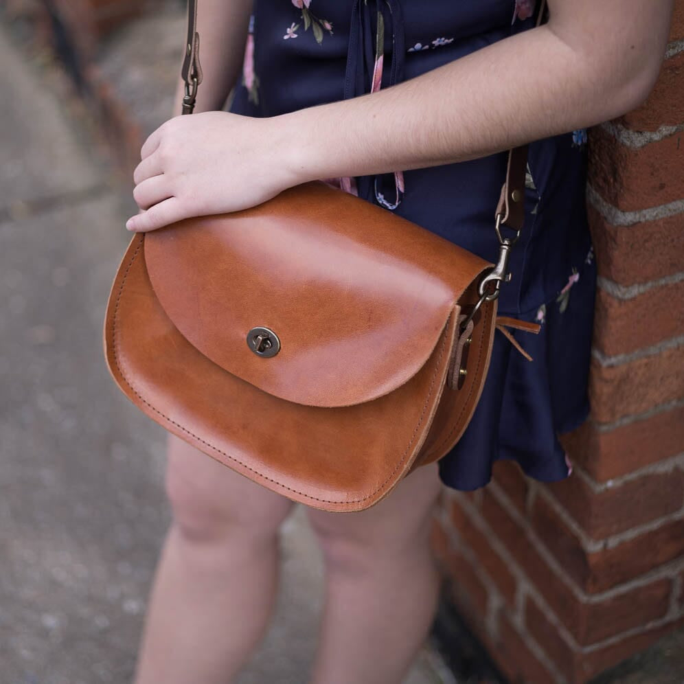 VIVIAN SATCHEL LEATHER CROSSBODY - SADDLE