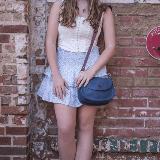 VIVIAN SATCHEL LEATHER CROSSBODY - SMALL - INDIGO BISON