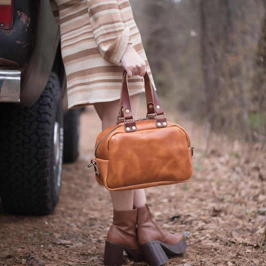 KINDLE LEATHER SATCHEL - PEANUT BISON