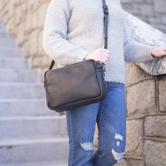 HOFFMAN LEATHER CROSSBODY BAG - BLACK BISON