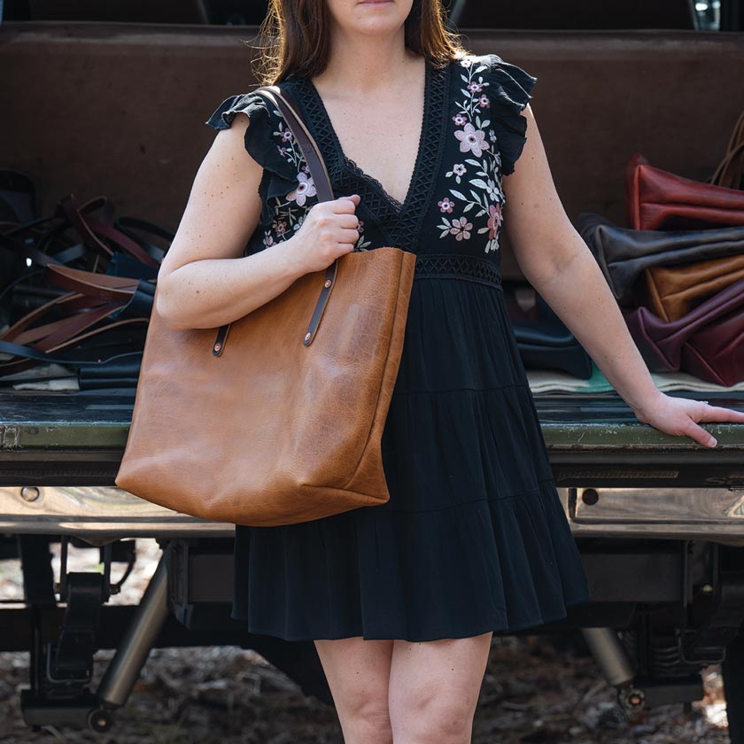AVERY LEATHER TOTE BAG - MEDIUM - SADDLE