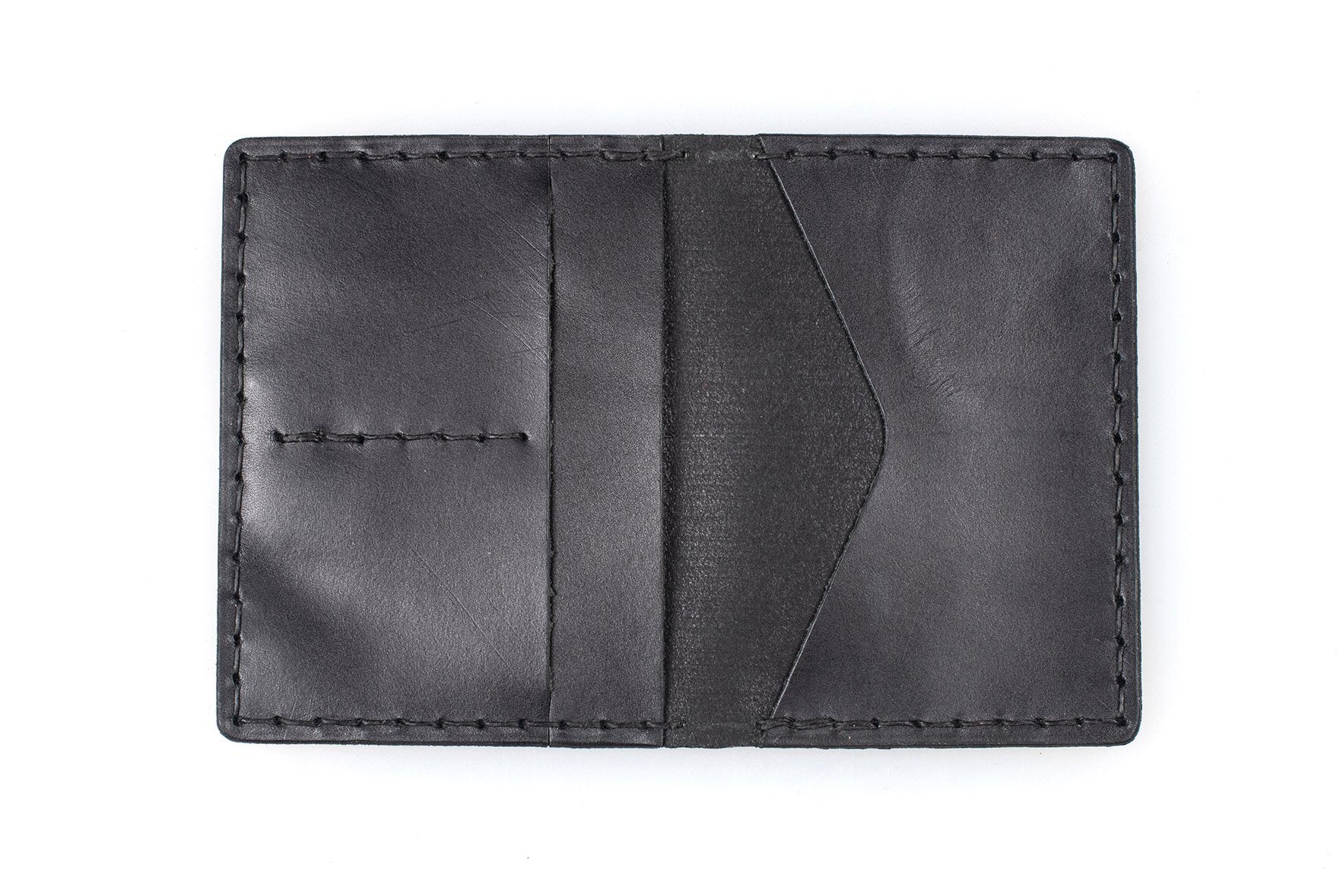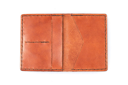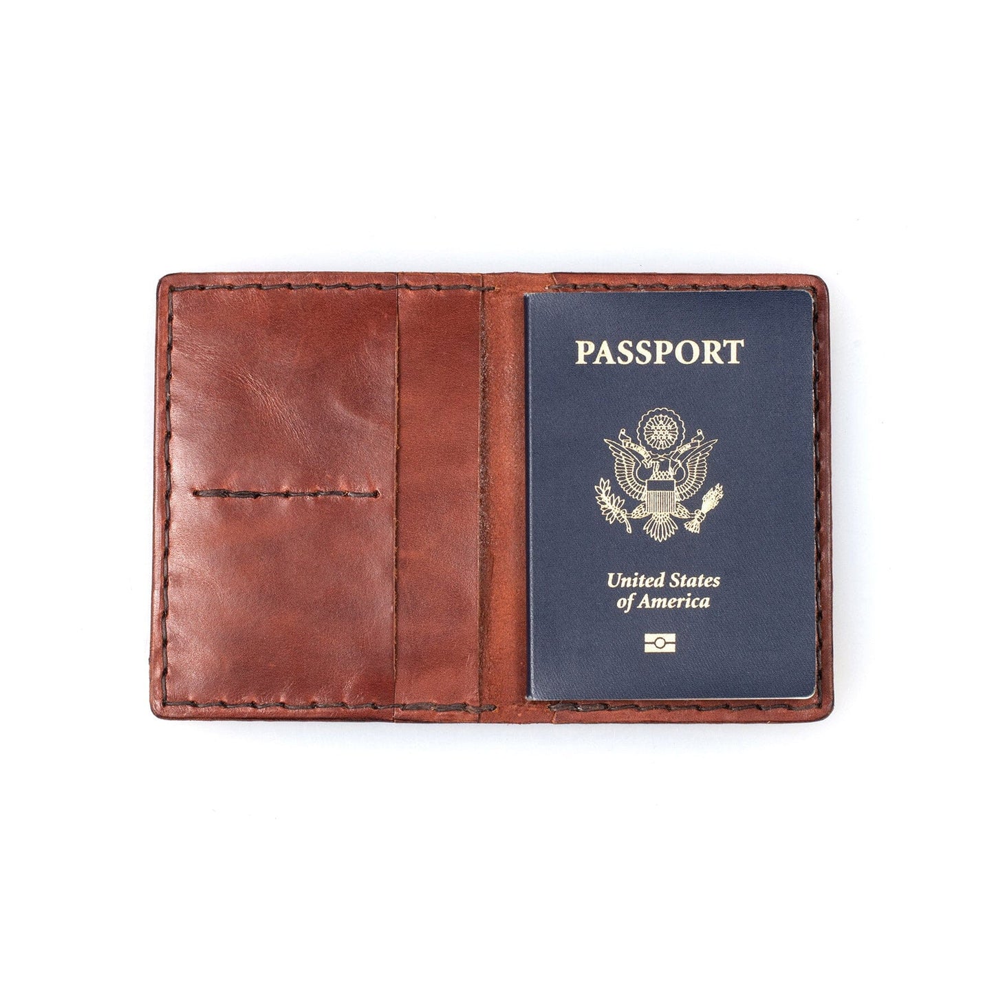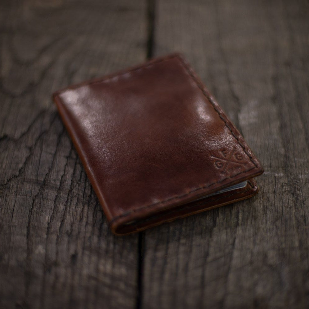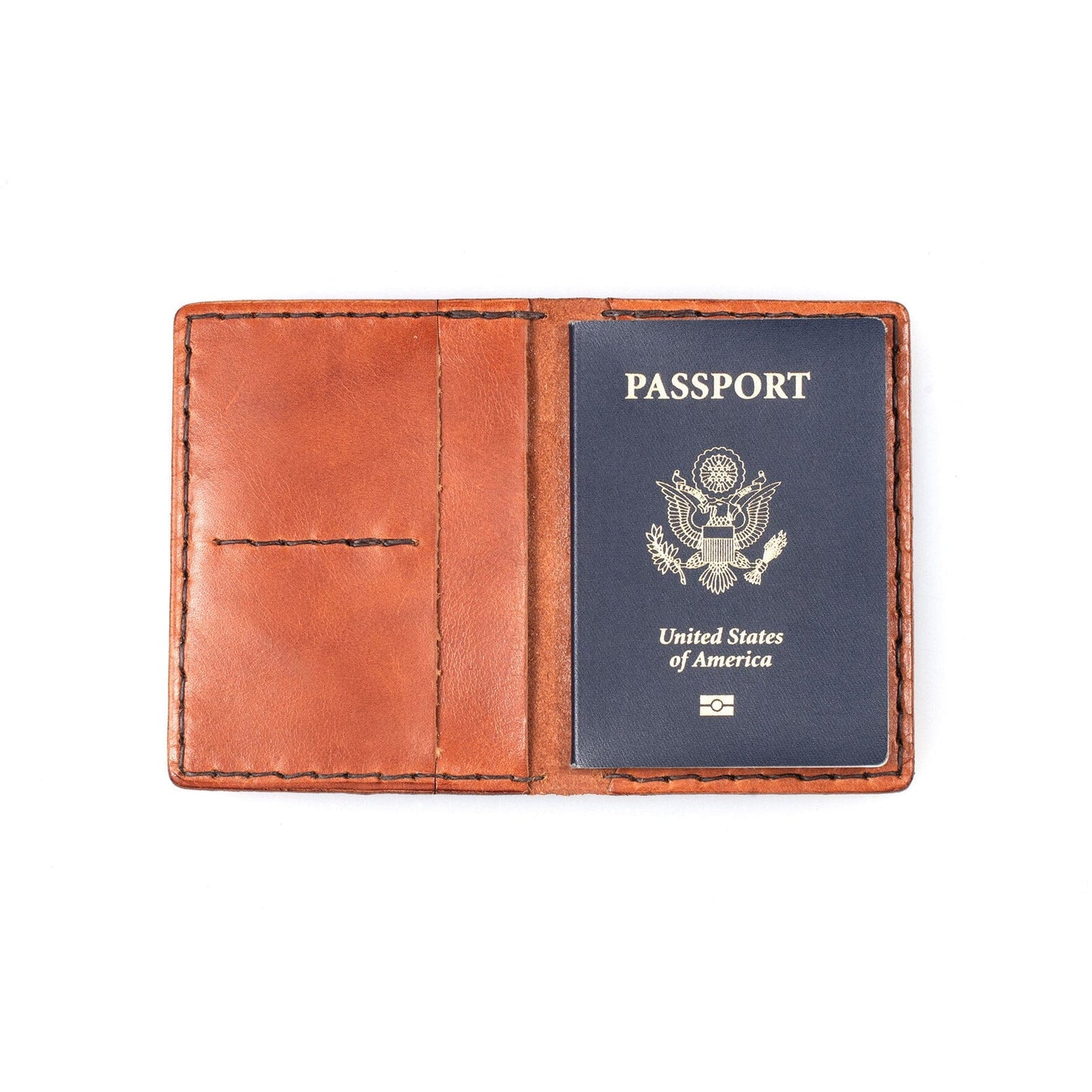 The adventure leather travel wallet is handmade in the USA and is the perfect wallet for the traveling man or woman.  Features two card pockets, a cash pocket and a place for your passport or a small notebook.  Made with 3-4oz full-grain veg tan bridle leather and is hand stitched with waxed thread.