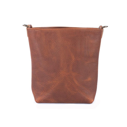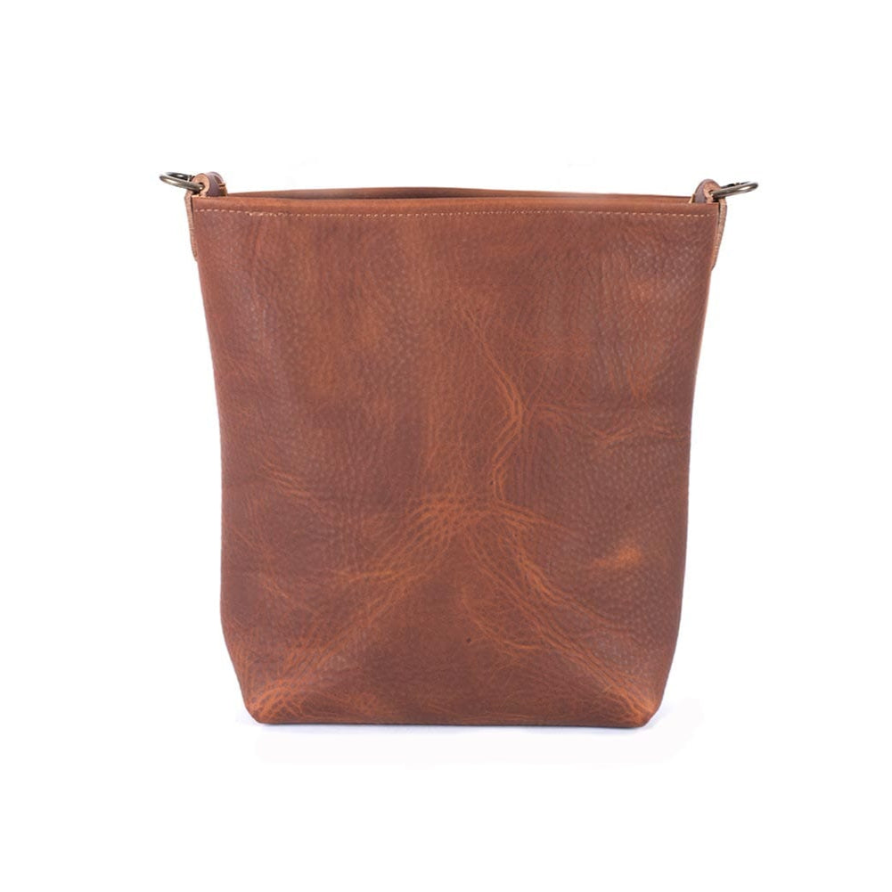 We took our Avery Leather Tote Bag Slim Medium and removed the handles, and added d-rings to make it a versatile crossbody bag. Choose your crossbody strap option, Add a zipper, or snap closure or button stud closure. You can also add a large outside pocket to the front back or both. Please note there are no inside pockets on this bag and it does not come with a strap. If you want a strap you need to add it below in the choose your strap drop down.