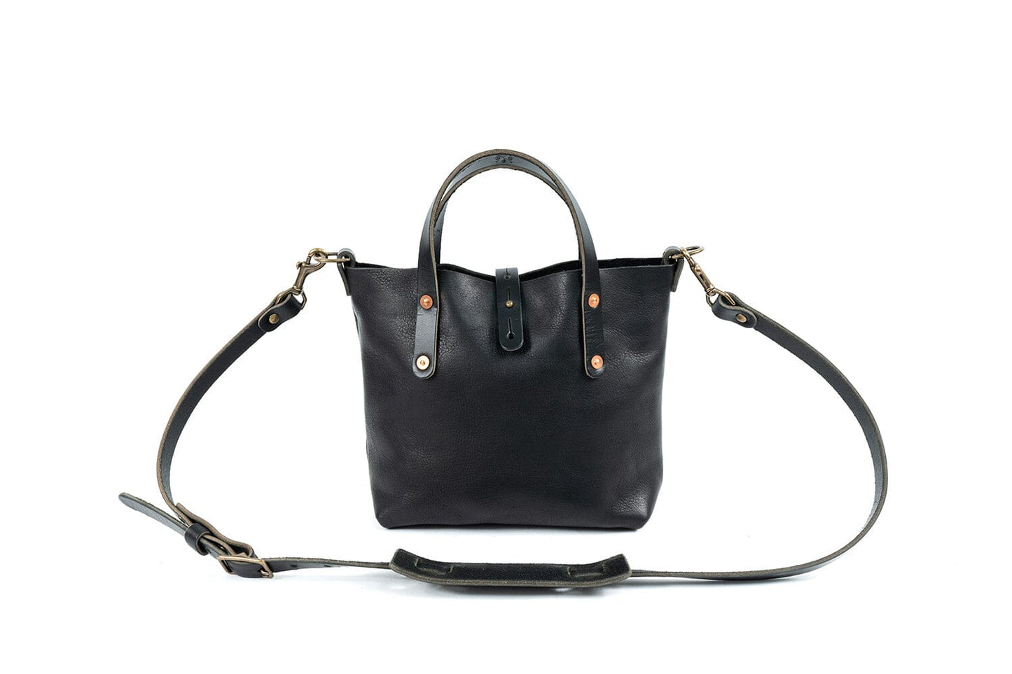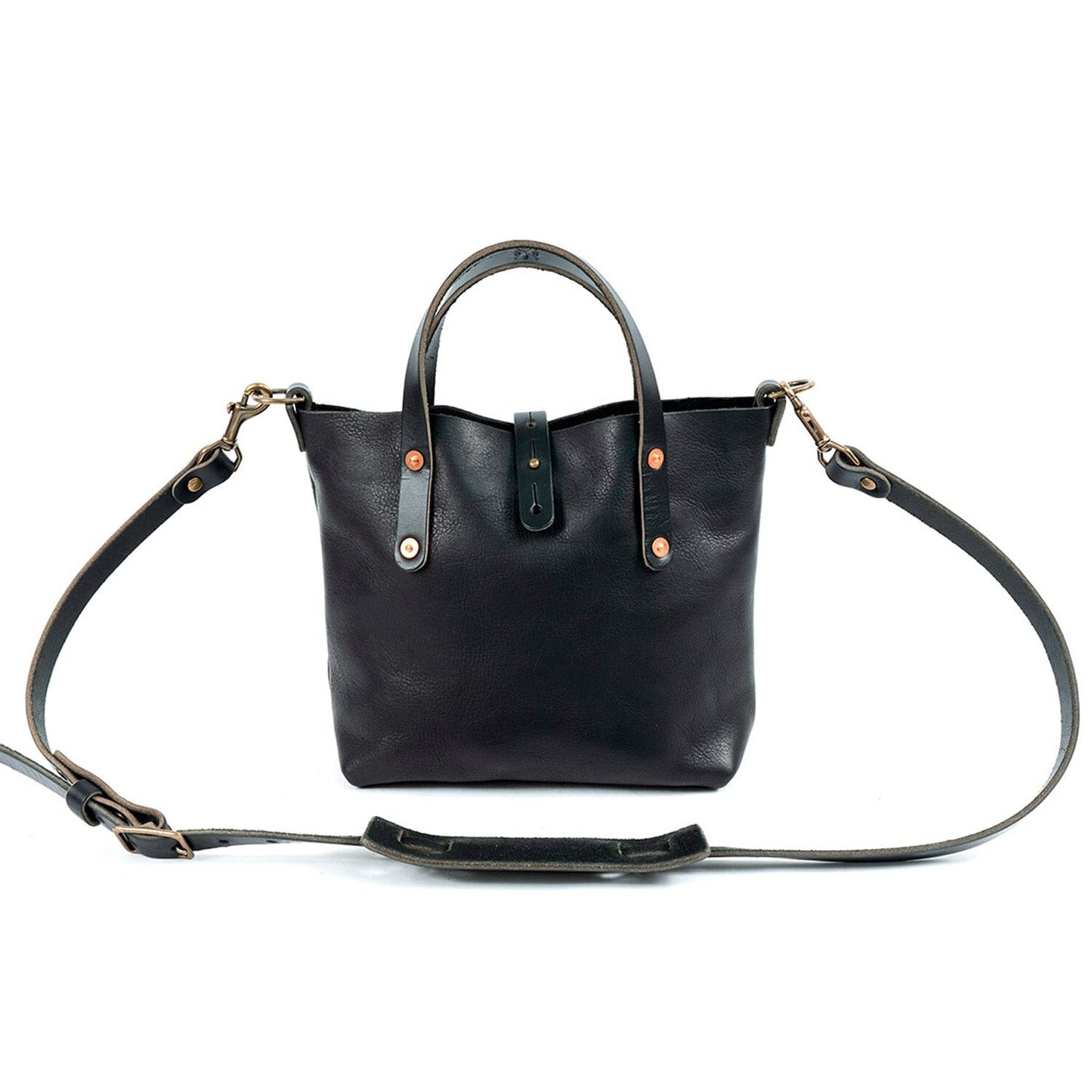 Everyone needs that perfect everyday bag. With versatility, usability, and comfort, our Avery Leather Tote Bag Mini Crossbody will be that bag for you. It has 5.1 liters of room for a wallet, cell phone, sunglasses, notebook, makeup, keys, and more. Inside there is one pocket perfect for your cell phone or other small accessories, as well as a convenient key clip. Just fill it with your essentials and carry it by the durable 10 oz. leather handles. Comes standard with an adjustable and removable crossbody strap with button stud strap enclosure. This mini leather crossbody bag is the perfect bag for hands-free daily carry of all your essentials.
