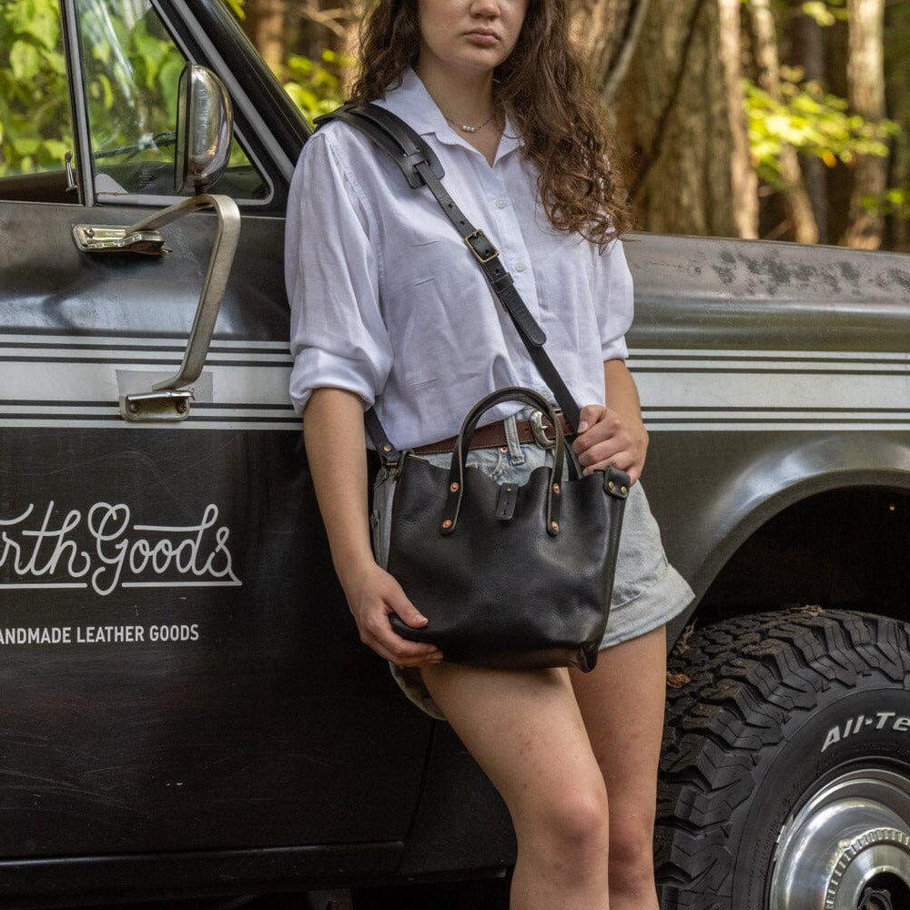 AVERY LEATHER TOTE BAG - MINI CROSSBODY - BLACK BISON