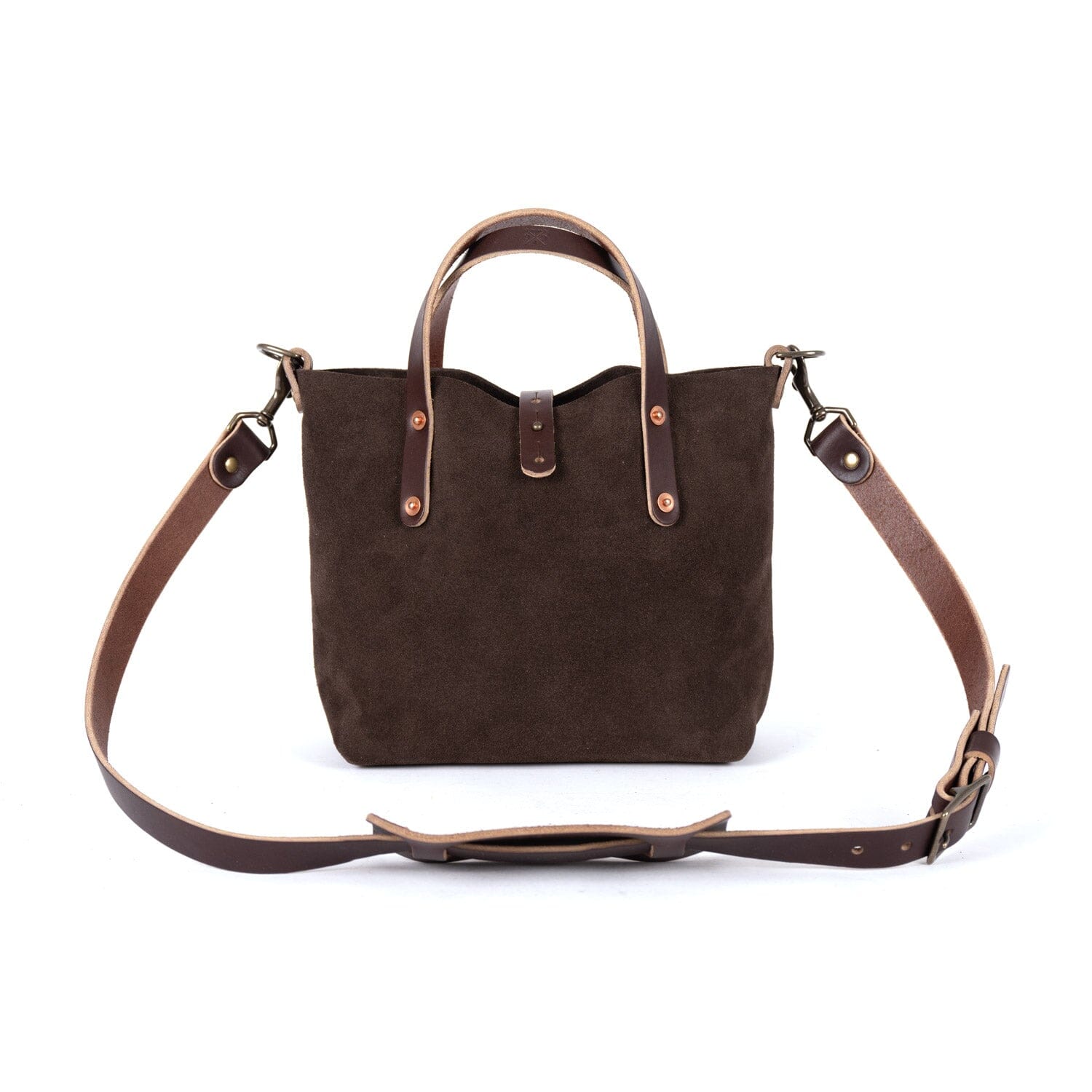 AVERY LEATHER TOTE BAG - MINI CROSSBODY - CHOCOLATE SUEDE - IN STOCK