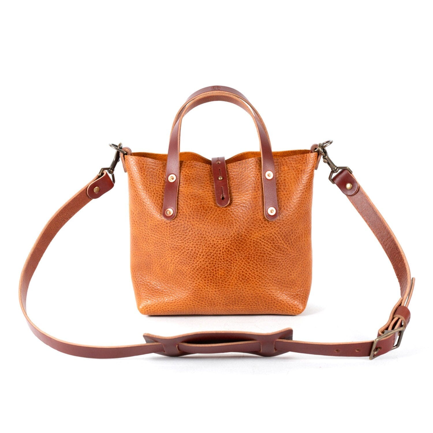 AVERY LEATHER TOTE BAG - MINI CROSSBODY - HONEY