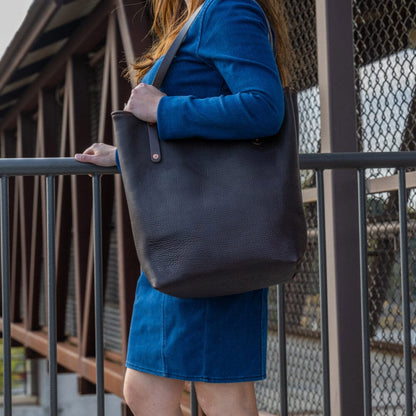 If you love our Avery Leather Tote Bag but need extra room and even more versatility in a slim, comfortable profile, look no further. Our Slim Large Version has 19 liters of room for a laptop, tablet, wallet, cell phone, sunglasses, notebook, keys, and more. Inside there are two pockets perfect for your cell phone or notebook, as well as a convenient key clip. Just fill it with your essentials and carry it by the durable 10 oz. leather handles. Or add an optional adjustable shoulder strap, and carry it cross body over your shoulder. With enough space for everything you need in a slim profile, this large leather tote bag will surprise you by how much it can carry, whether you’re taking your kids shopping, meeting with clients, or going on a weekend trip.