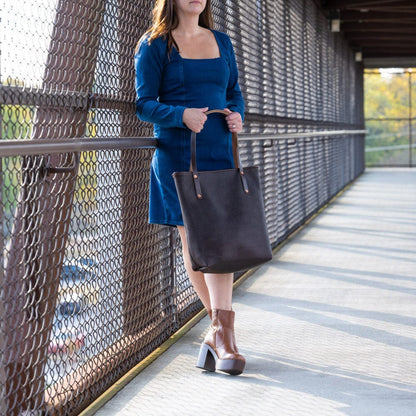 AVERY LEATHER TOTE BAG - SLIM LARGE - MOCHA