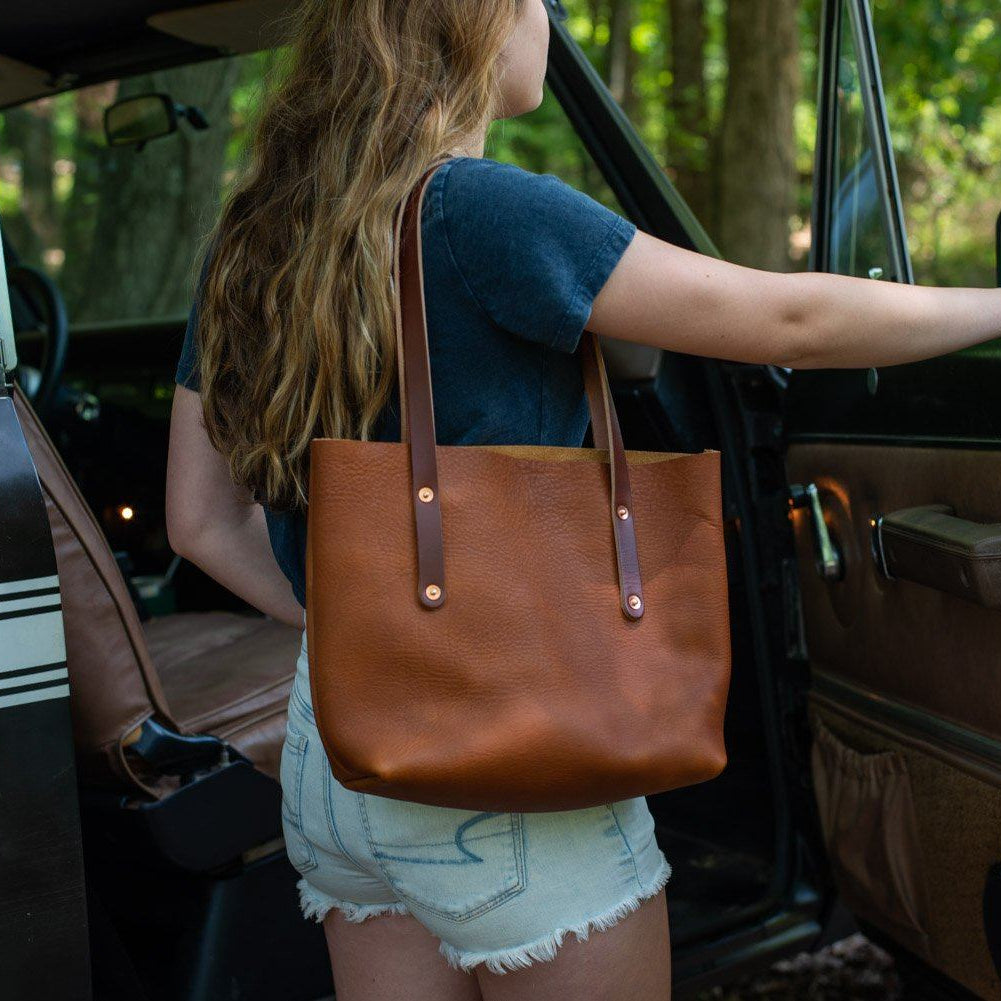 We make our Avery Leather Tote Bag by hand in small batches with 100% full-grain 6 oz. American leather in our shop in Marietta, GA, and as always, it’s fully covered by our Lifetime Guarantee.