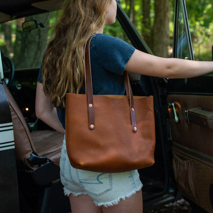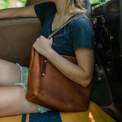 AVERY LEATHER TOTE BAG - SMALL - SADDLE