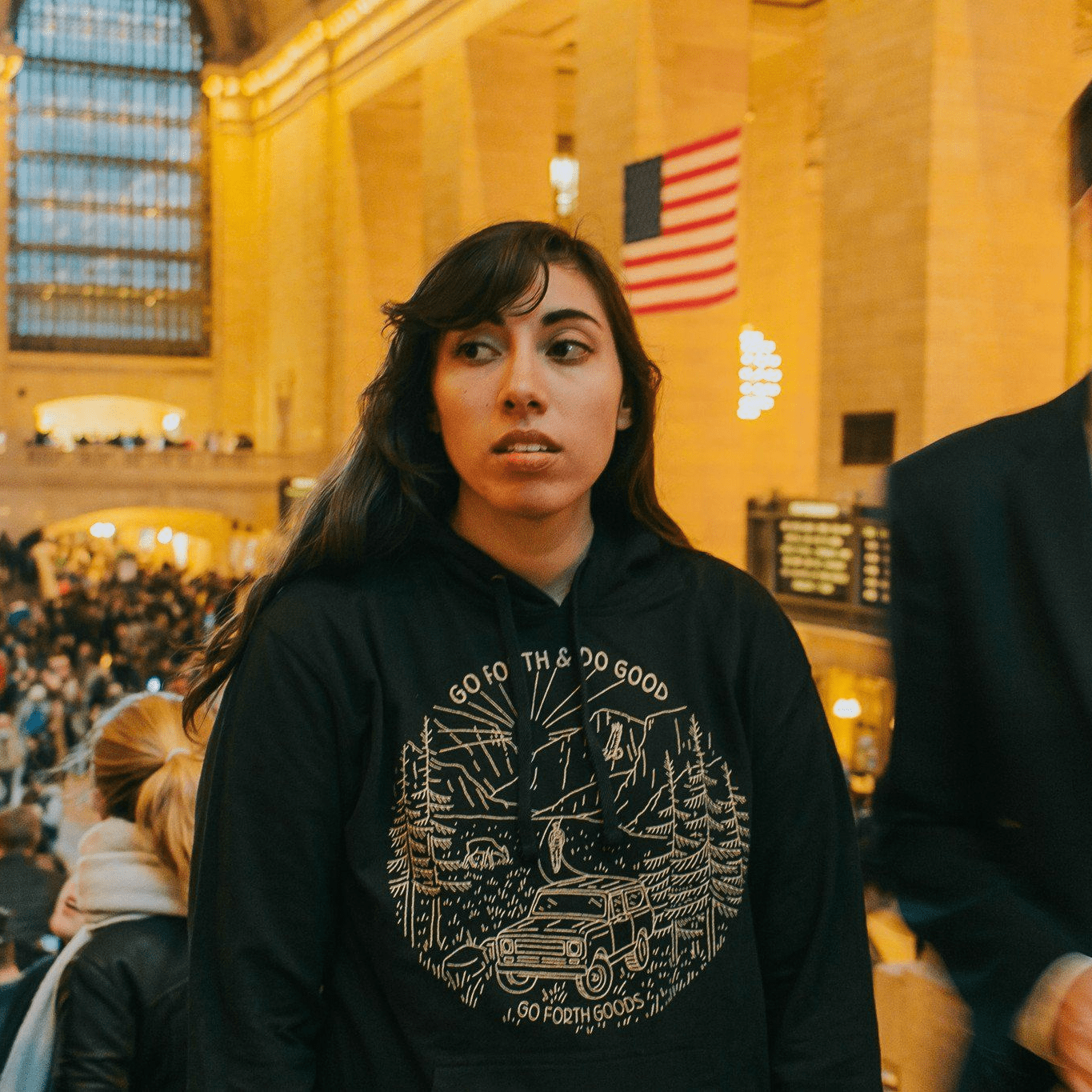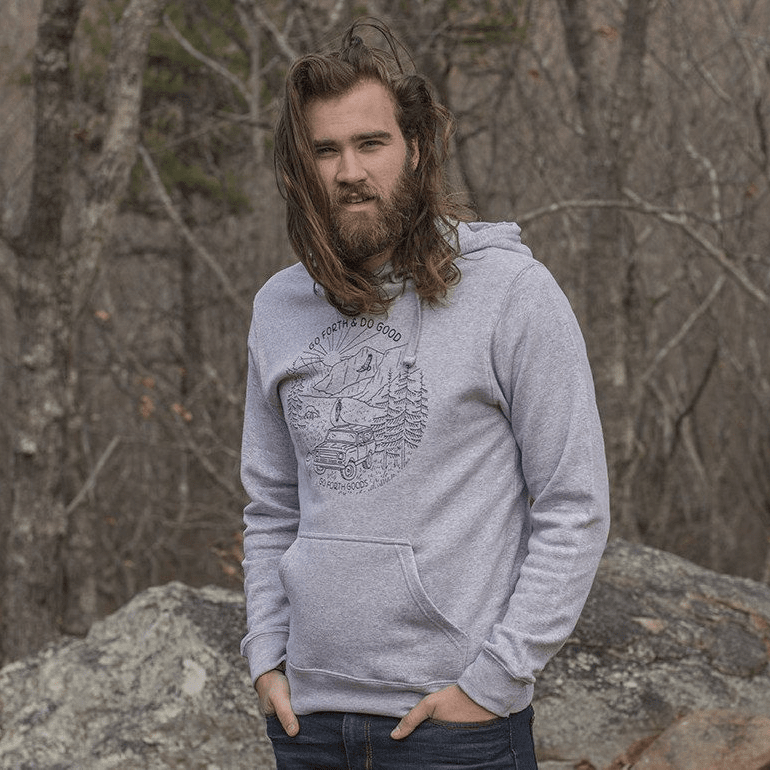 New Go Forth & Do Good Adventure Graphic on a black or heather gray hoodie. Printed on poly blend material, they are super comfy and won't shrink. Hoodie is soft and super comfy!