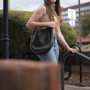 CELESTE LEATHER HOBO BAG - MEDIUM - FOREST GREEN