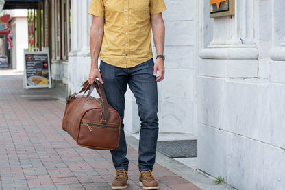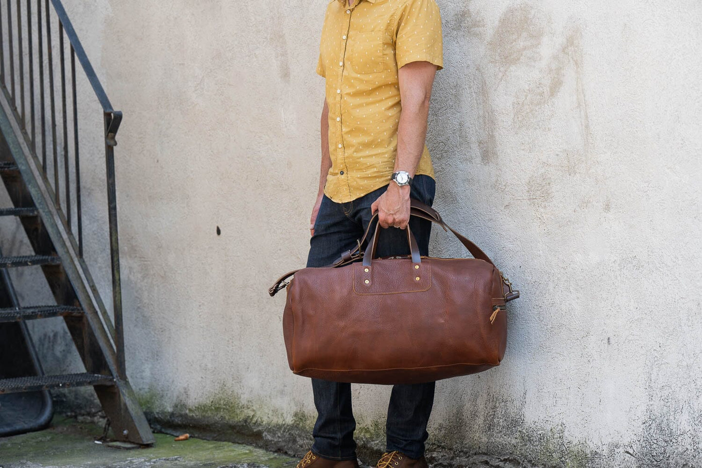 With 61 liters of space, the Expedition Leather Duffle Bag is the largest duffle bag in our collection. It’s designed to handle the longest and roughest journeys, like family vacations, overseas excursions, and extended business trips. Though it holds more than a week’s worth of travel items, this large leather duffle bag is still compact enough to comply with airline carry-on regulations.