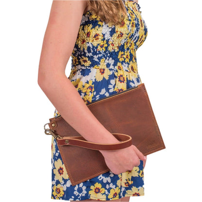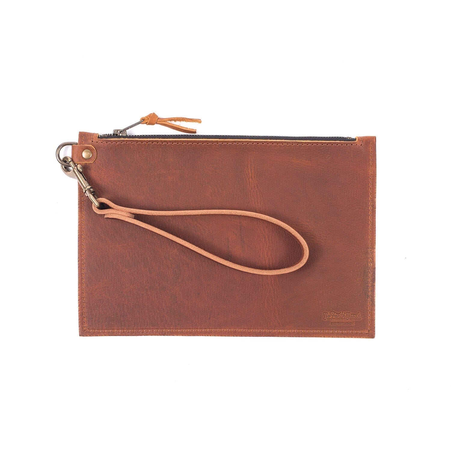 The Felicity Zippered Clutch with Wristlet Small is the perfect Smaller companion for a night out on the town, a wedding, or just whenever you want to keep things simple. Hand made with premium full-grain leather, solid brass hardware, and a YKK zipper closure to keep all your belongings secure inside. It is 11"W X 7"H and will hold a smaller wallet, phone, keys, make-up, and other essentials.