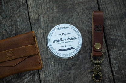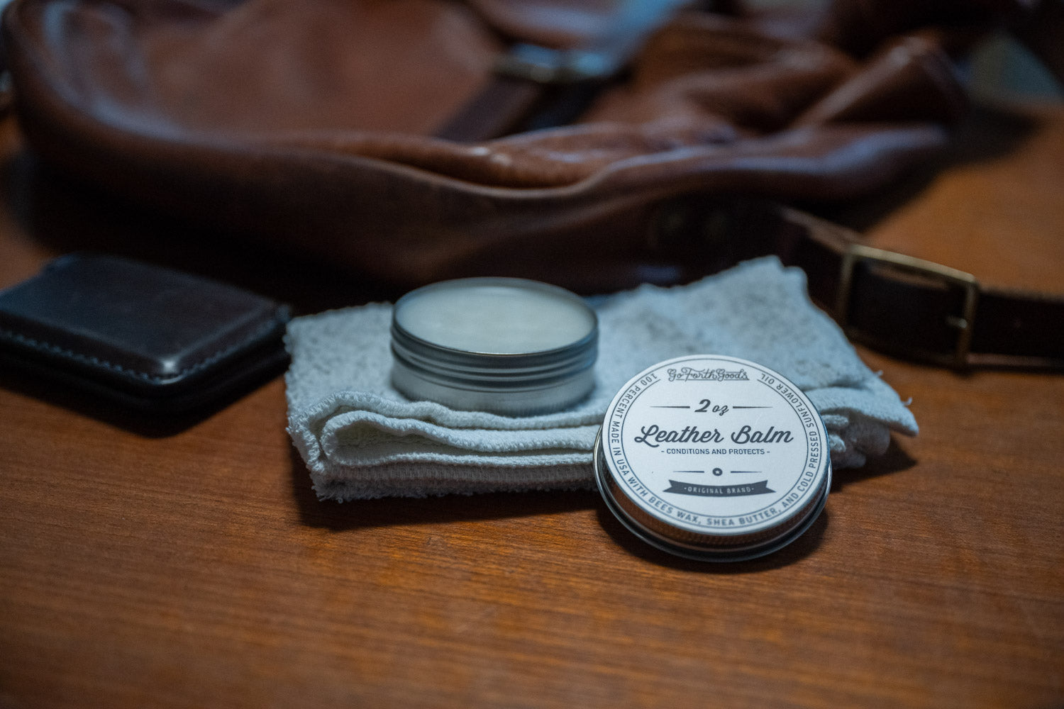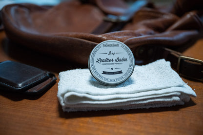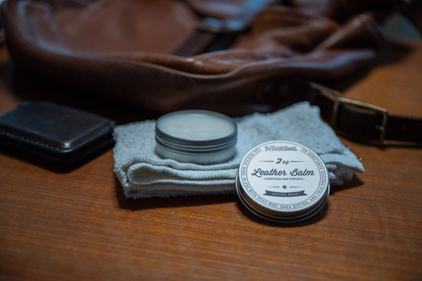 GFG Leather Balm conditions and protects your Go Forth Goods and other leather products. Recommended to apply every 3-6 months to keep your leather goods looking and feeling it's best. GFG Leather Balm adds a wax coating for protection against water and dirt. Made 100% in the USA with bees wax, shea butter, and cold pressed sunflower oil. For use on all leather but suede. May darken some leather; original color typically returns in time.