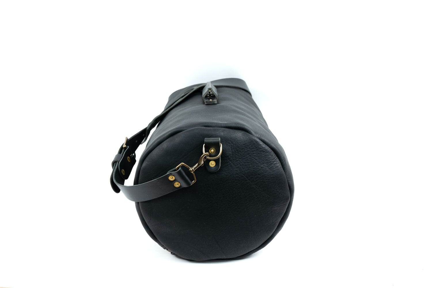 For extra security, you can put a padlock on the hardware at the top before clipping the strap to the bag. With this military-style leather duffle bag, you have two options for transport: a sturdy top handle and a comfortable long shoulder strap. Turn your duffle bag into a backpack with our optional second leather shoulder strap.