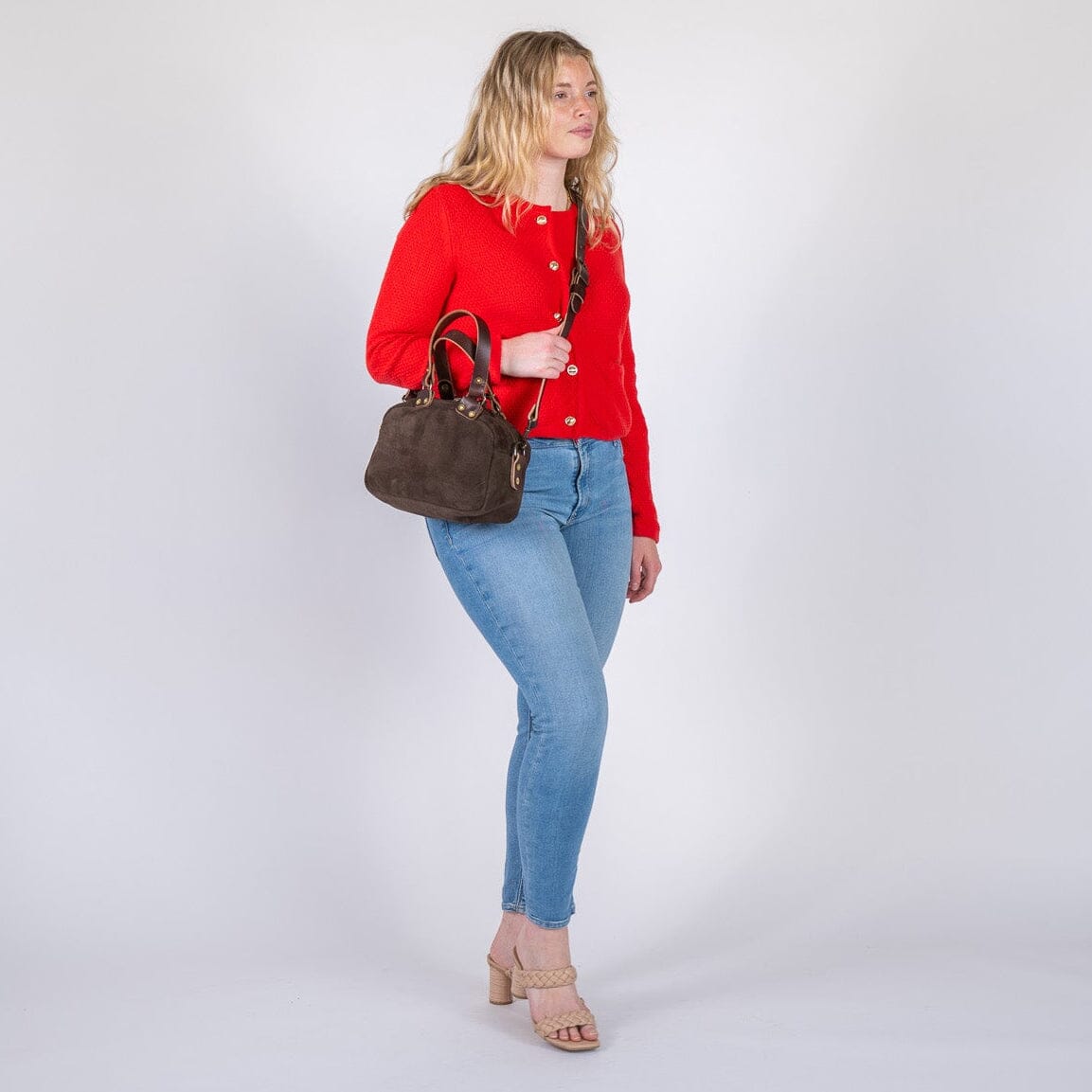 HOFFMAN LEATHER CROSSBODY BAG - MINI - CHOCOLATE SUEDE