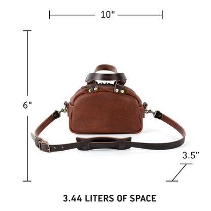 A mini version of the Hoffman Weekender Duffle. Inspired by a 100-year-old leather gym bag carried by Mr Hoffman the Grandfather of a customer we made the first bag for. This compact, full-grain leather crossbody bag is made to last. Large enough to carry all your daily essentials and small enough to be a daily carry bag. Comes with d-rings and adjustable and removable 1" wide crossbody strap.
