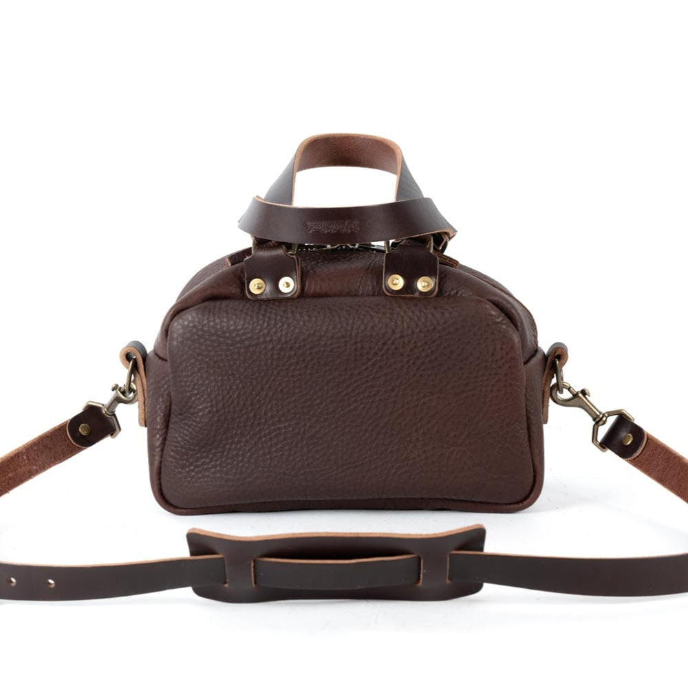 A mini version of the Hoffman Weekender Duffle. Inspired by a 100-year-old leather gym bag carried by Mr Hoffman the Grandfather of a customer we made the first bag for. This compact, full-grain leather crossbody bag is made to last. Large enough to carry all your daily essentials and small enough to be a daily carry bag. Comes with d-rings and adjustable and removable 1" wide crossbody strap.
