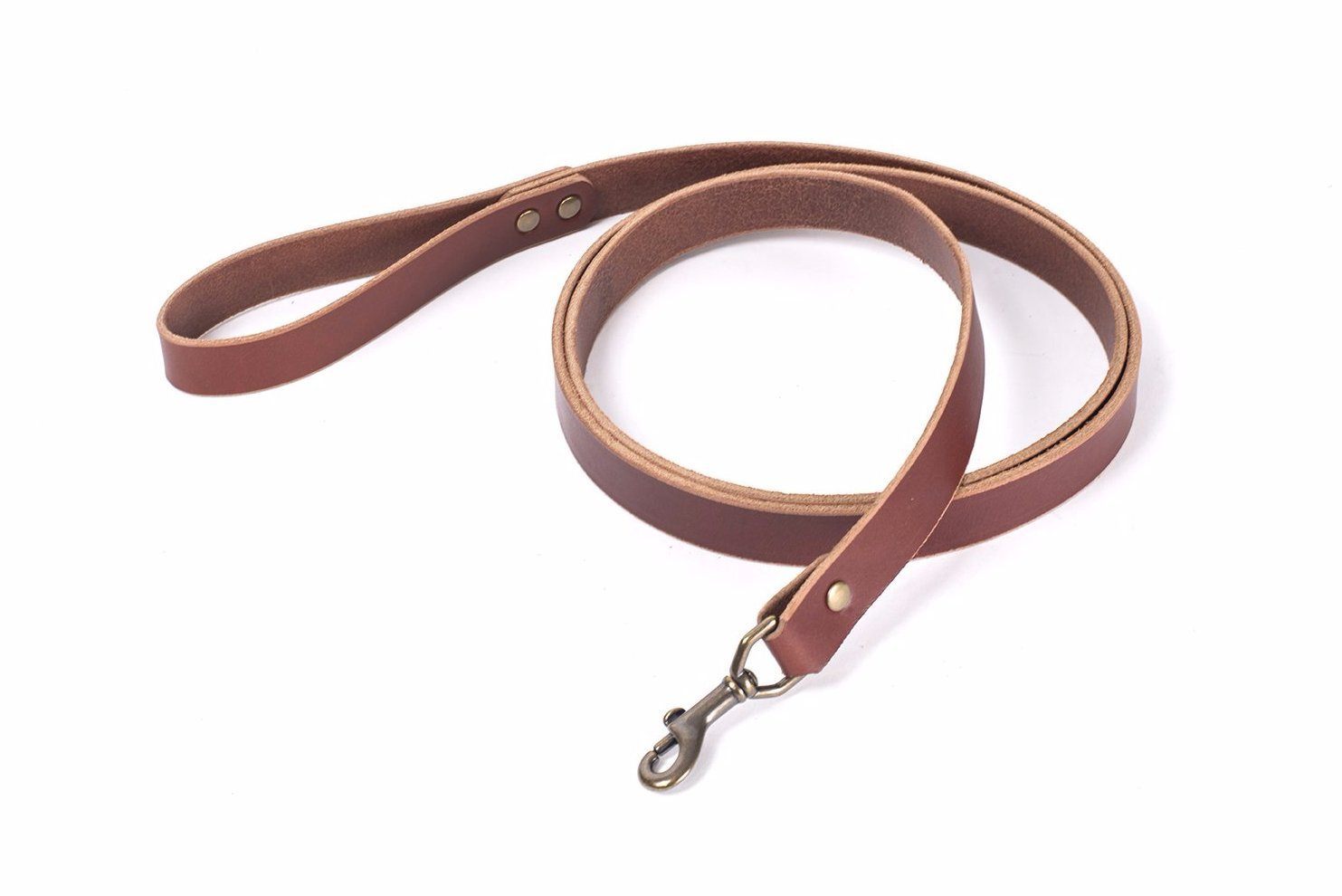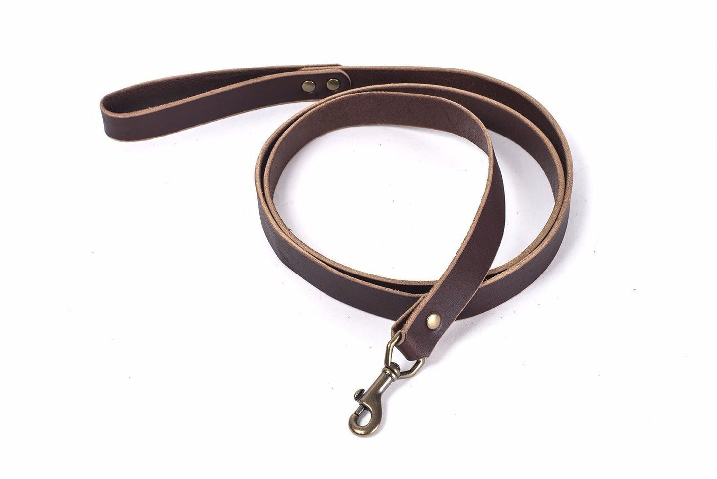 The perfect companion to our leather dog collar. Handmade with full grain 10 oz leather and solid brass hardware.