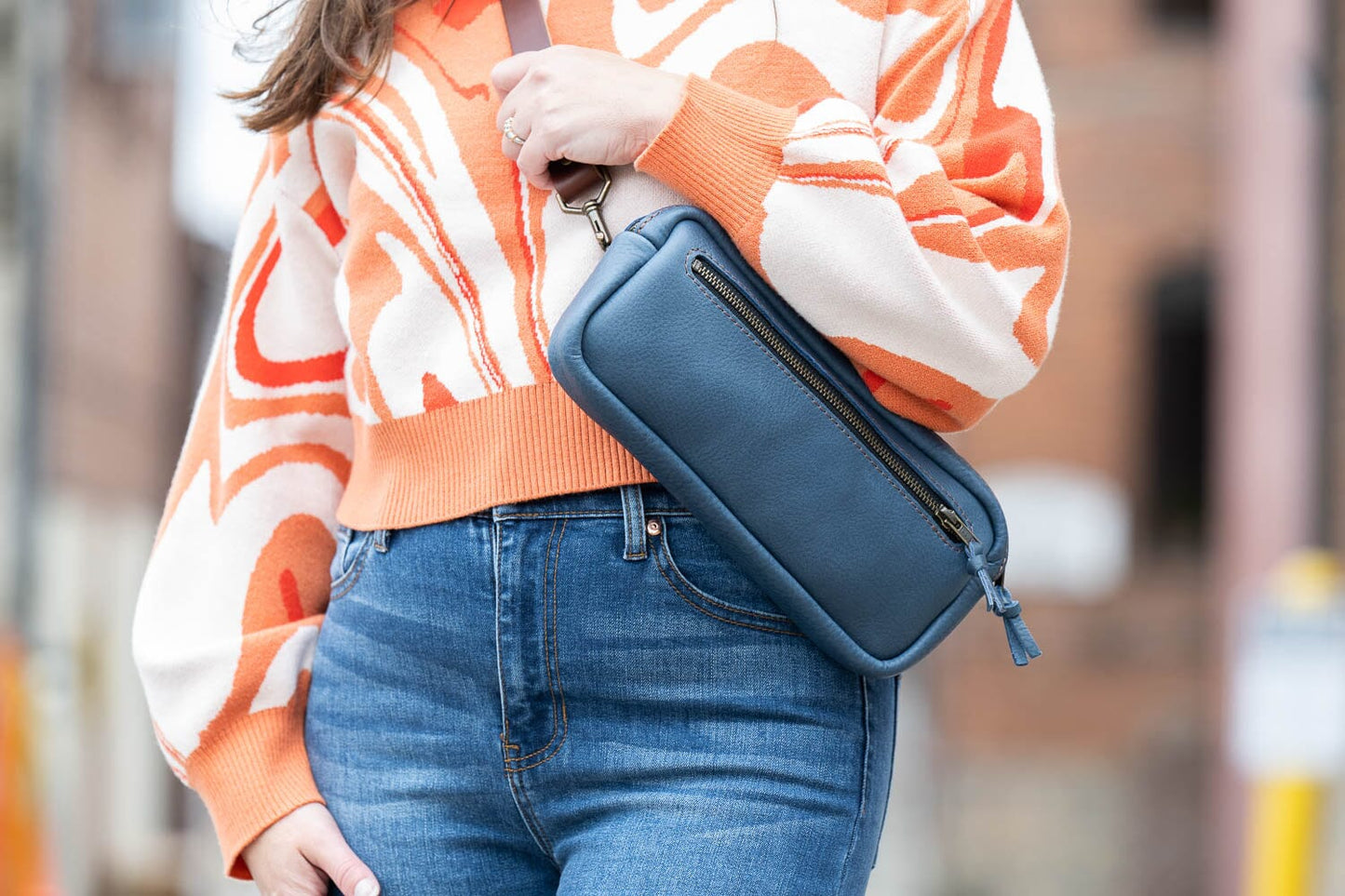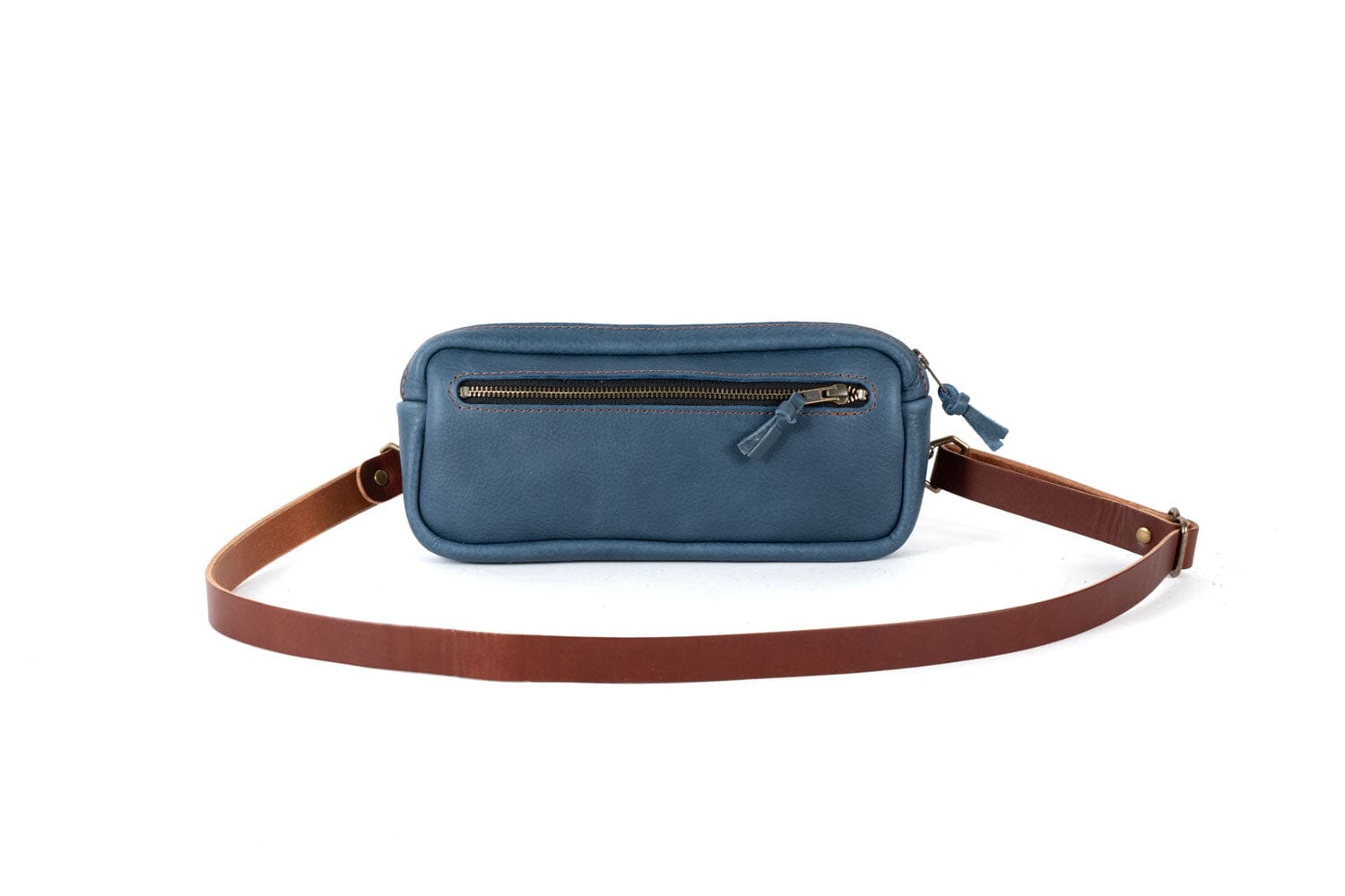 LEATHER FANNY PACK / LEATHER WAIST BAG - DELUXE - SMOKEY BLUE