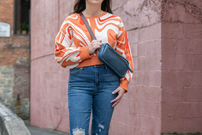 A modern design on a classic fanny pack bag. We were not ok just putting out a fanny pack that looks straight out of the 80"s so we started from scratch and made our own. Wear it around your waist or lengthen the adjustable strap (25"- 48") and wear it cross-body.