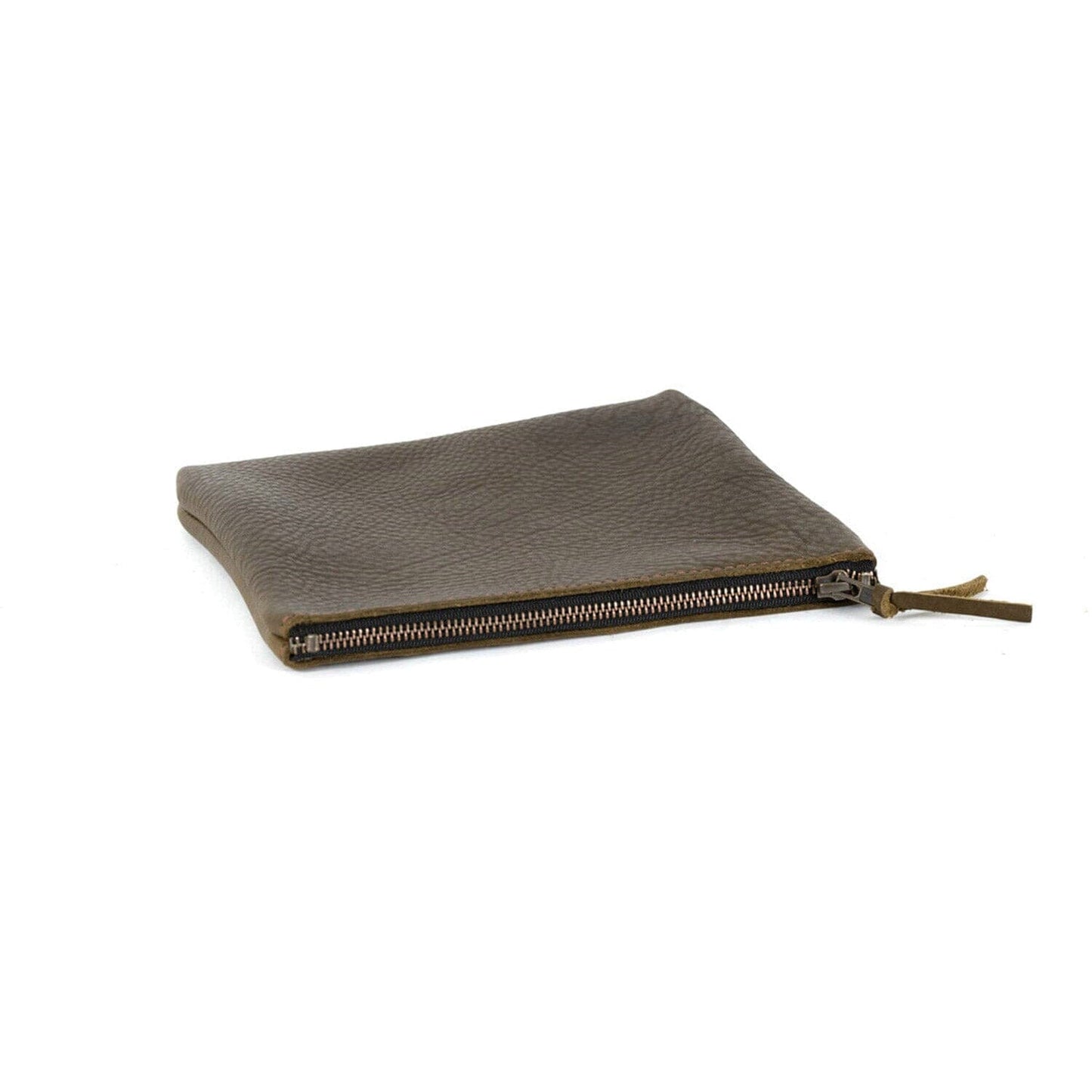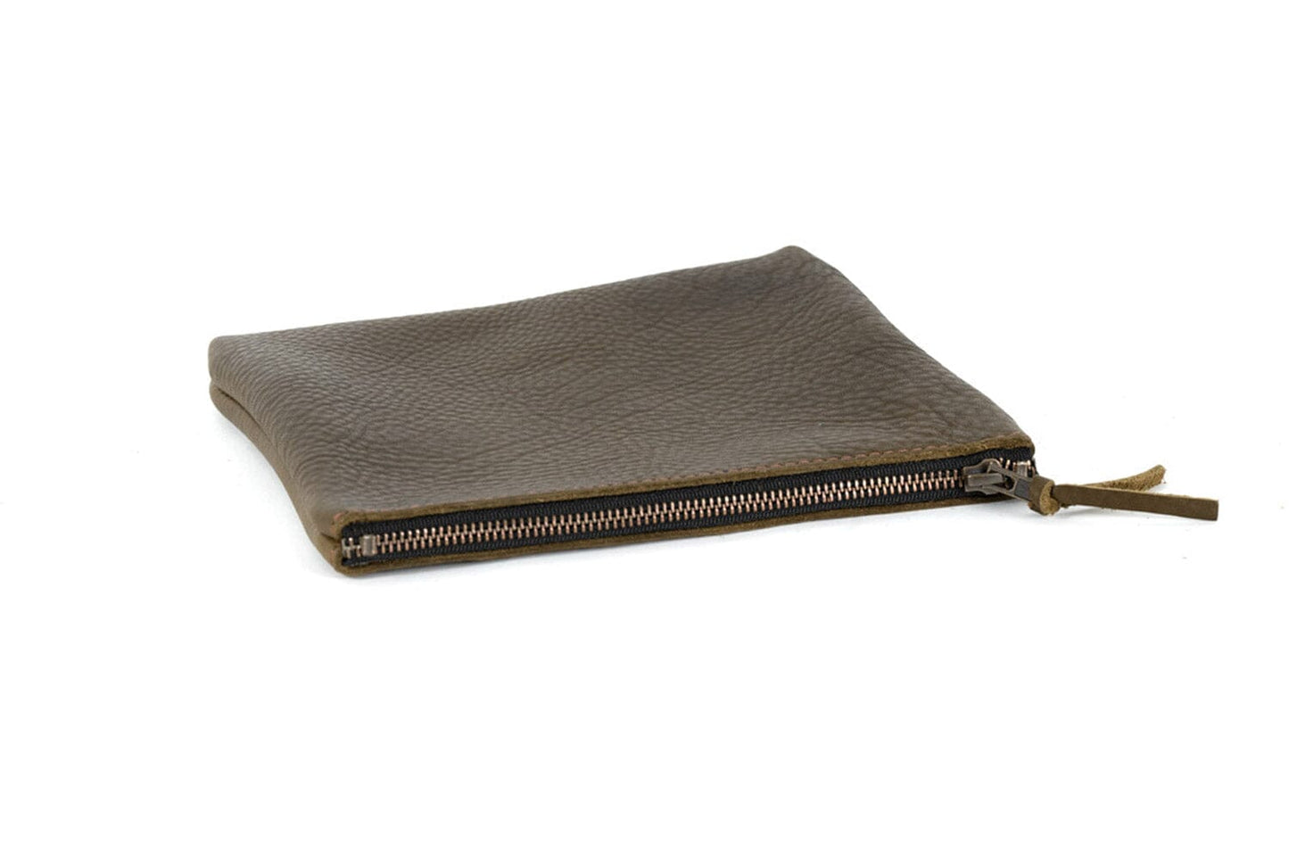 LEATHER TOP ZIPPER POUCH - OLIVE