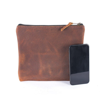 The Leather Top Zipper Pouch is a great versatile accessory for holding a wide variety of items. Whether you're packing it with makeup, your wallet, keys and cell phone or other assorted items, it's made to take a beating and never let you down.