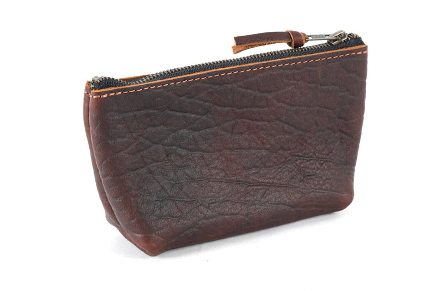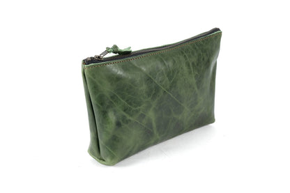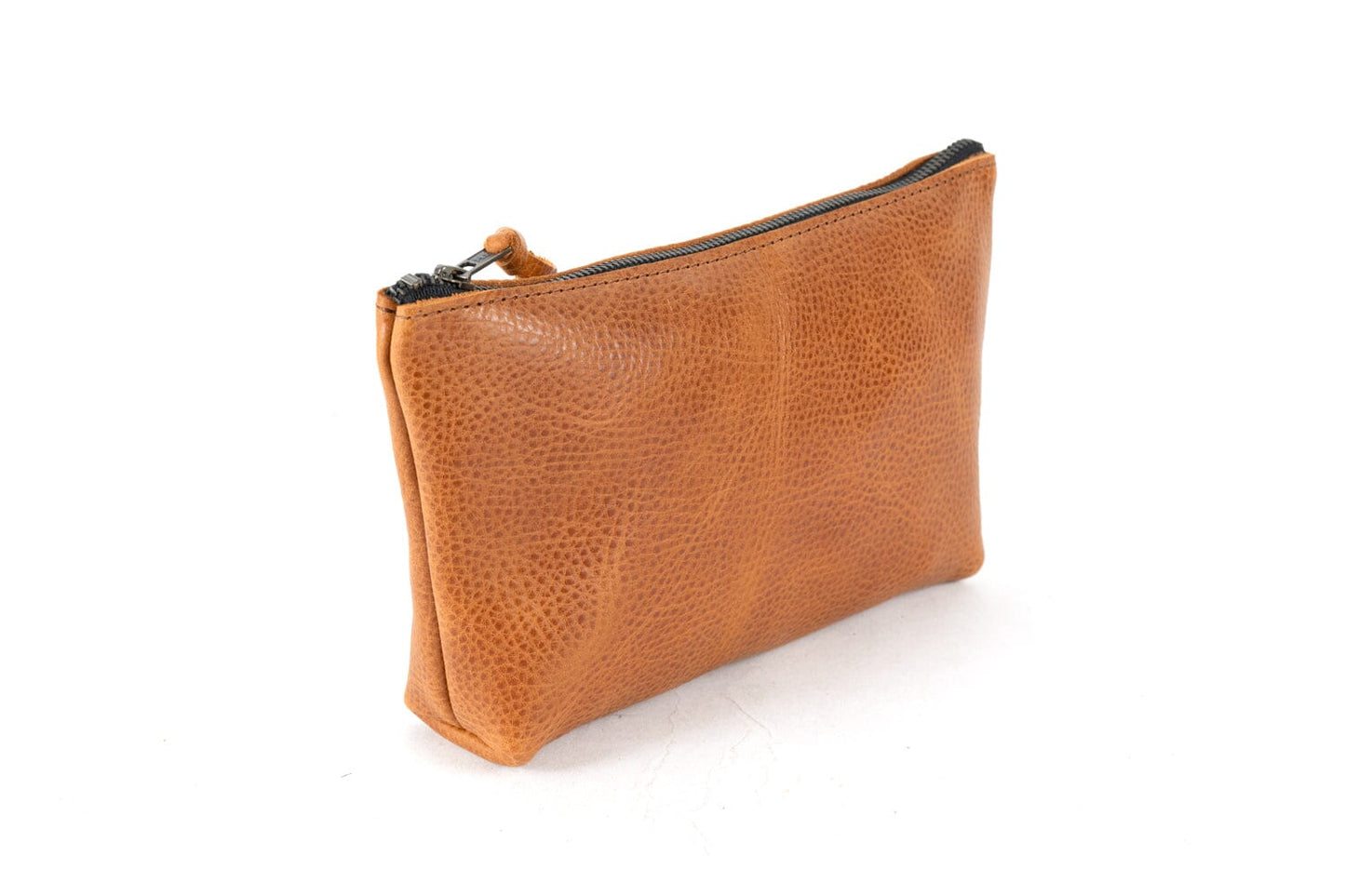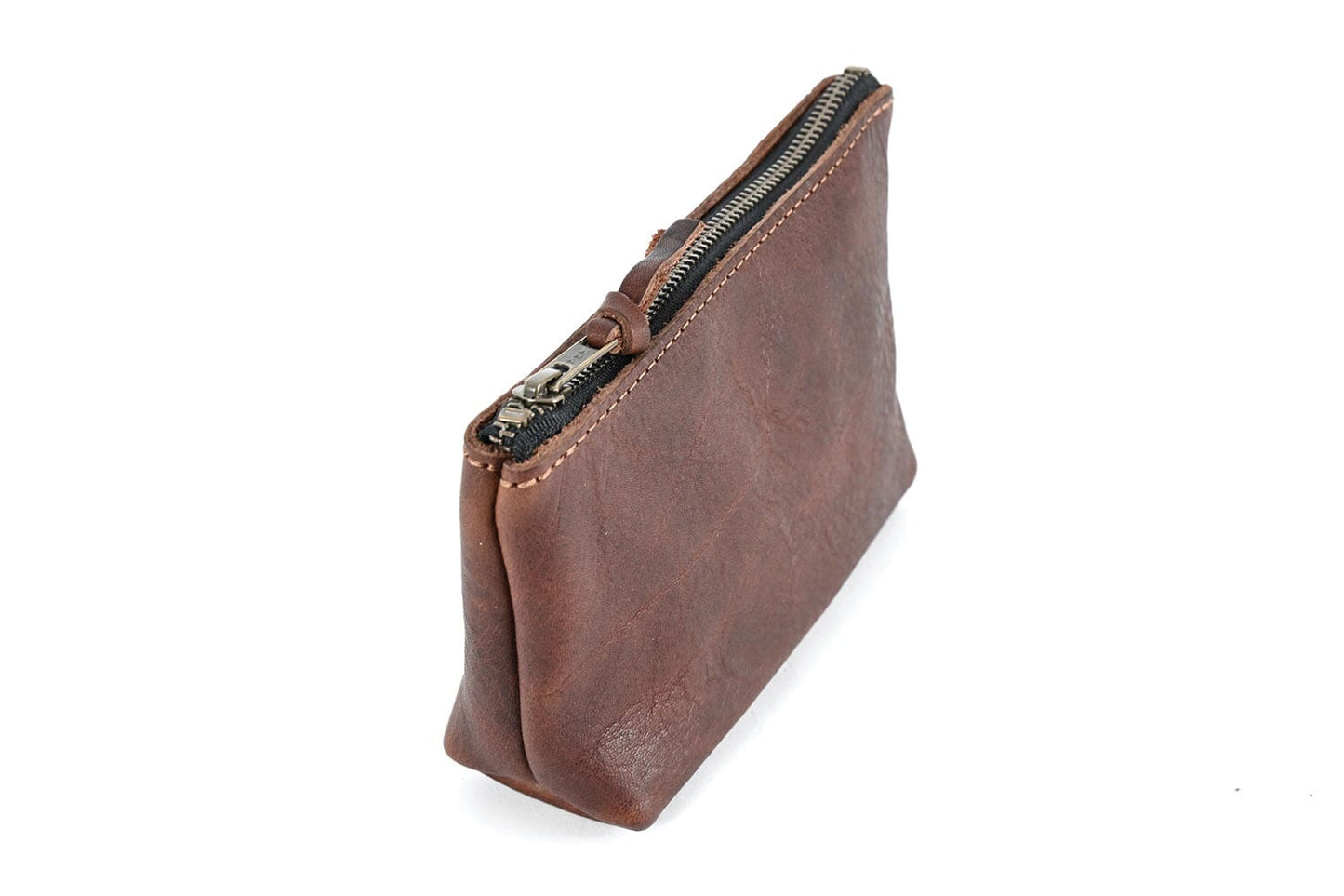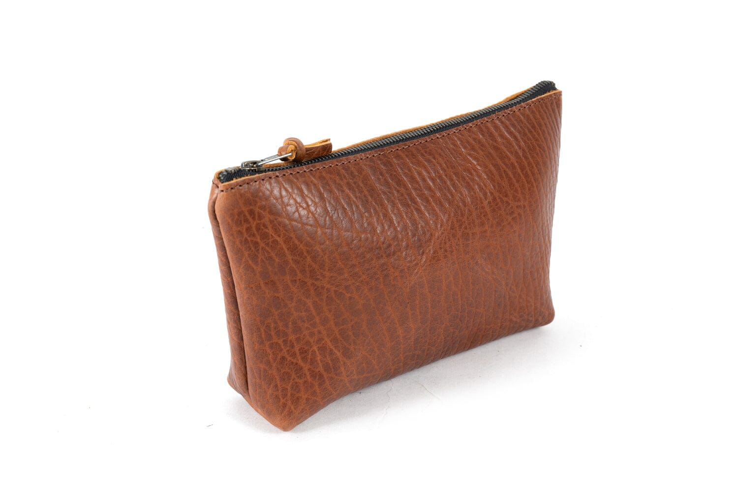 The Leather Zippered Pouch with gusset in the large size is a great versatile accessory for holding a wide variety of items.  Whether you're packing it with makeup, keys and cell phone or other assorted items, it's made to take a beating and never let you down.