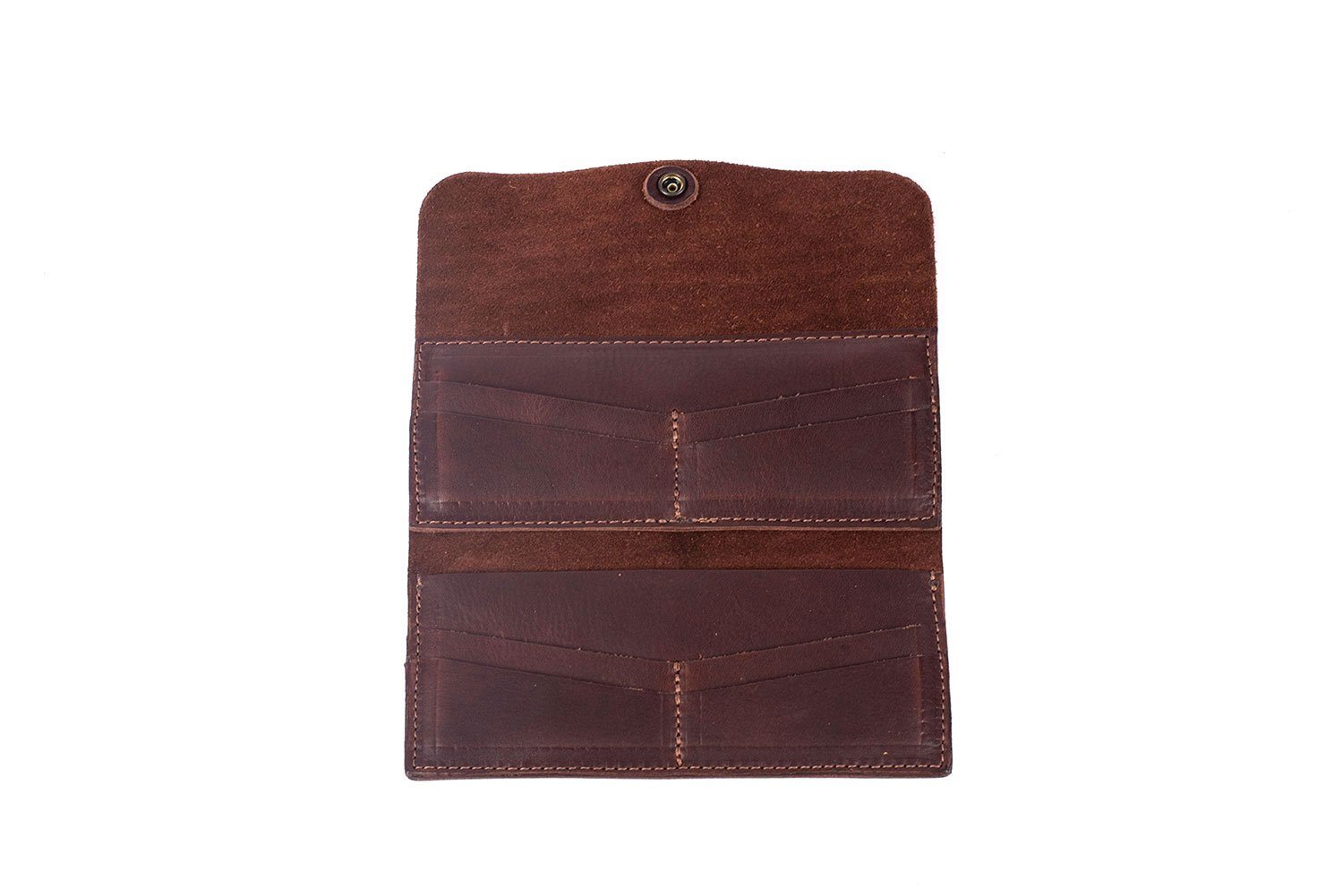 The Marie leather wallet was designed with functionality and durability in mind. With 8 card pockets, one large cash pocket, a large zippered pocket, and snap closure, it will hold everything you need and is made to last.