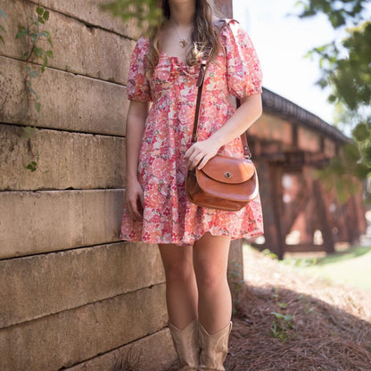 VIVIAN SATCHEL LEATHER CROSSBODY - SMALL - CARAMEL
